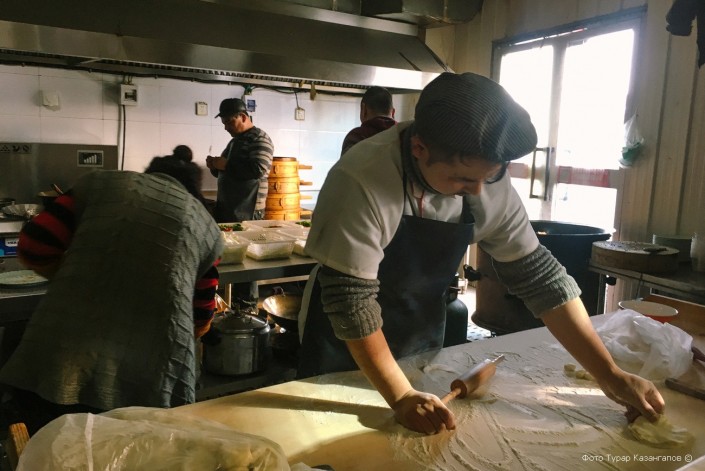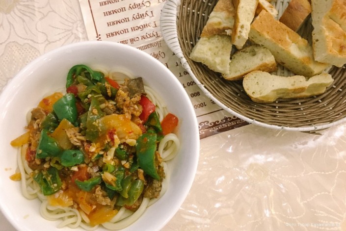 "Вот здесь мы обычно обедаем. Могу посоветовать хорошую кухню, здесь плов и лагман всегда отличного качества", - отмечает она.