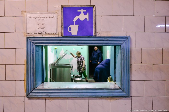 Ближе к вечеру очередная смена готовила еду для бастующих. На кухне заваривали горячий чай и тут же разливали по флягам.
