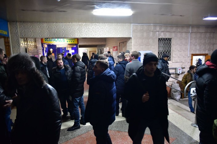 В зале нас ждали около 200 шахтеров. В дни забастовки они старались не покидать стены шахты, чтобы поддержать своих коллег, которые все это время находились под землей.