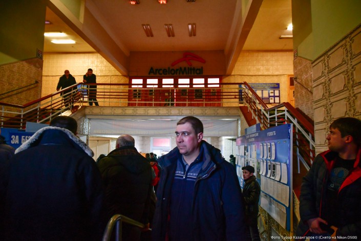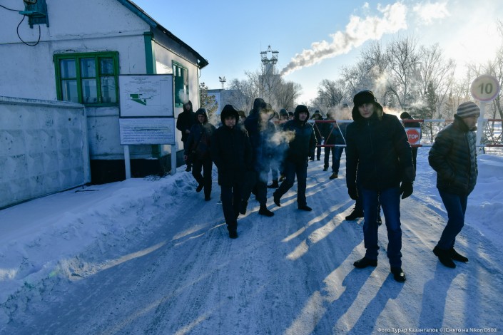 Морозное утро в Шахтинске. Стоим у КПП на входе в шахту "Казахстанская", охрана отказывается пускать нас внутрь.
