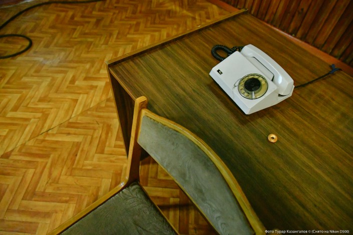 Шахтеры окружают нас и за считанные минуты мы оказываемся в самом здании. Первого, кого мы увидели в актовом зале - уставшего шахтера, дежурившего возле стационарного телефона. Уже потом нам станет ясно, что этот советский аппарат - самая ценная вещь в эти дни. Но об этом немного позже.