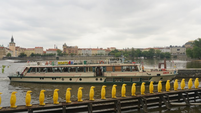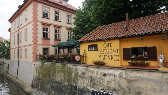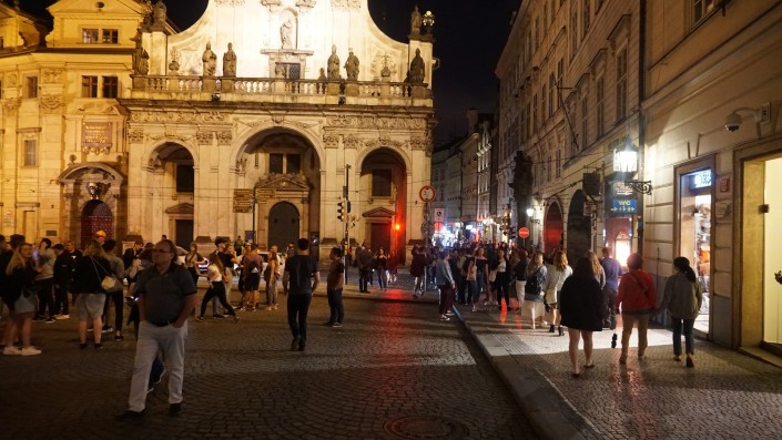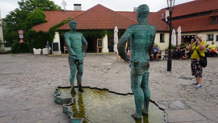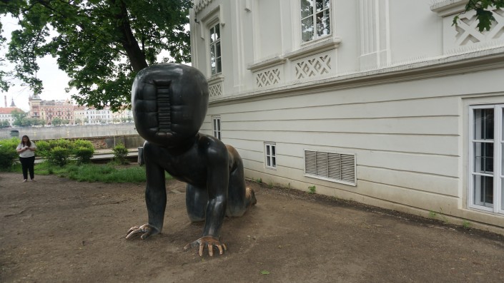 Отсюда же недалеко до музея Франца Кафки. Перед входом в музей установлена скандальная скульптура Давида Черны "Писающие мужчины". Скульптор прославился множеством подобных арт-объектов. Первая его работа - это танк, выкрашенный в розовый цвет, который он отправил на плоту по Влтаве. За эту шалость Давиду Черны выписали огромный штраф и арестовали на 14 суток. Он также создал памятник Подхалимству, вращающуюся голову Франца Кафки, автобус на руках в Лондоне, голову, плюющую в океан, в Нью-Йорке и многие другие.