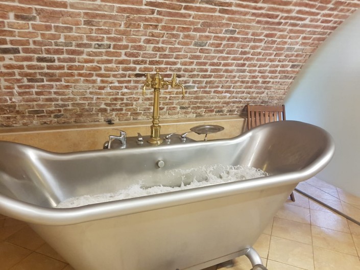 Эта же пивоварня придумала такую процедуру, как пивные ванны. Стоит процедура около 30 евро. В ванну с минеральной водой добавляют сбор из целебных трав и специальное темное пиво для ванн. Процедура расслабляет мышцы, прогревает суставы и обладает оздоровительным эффектом для волос и кожи.