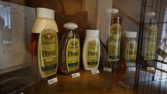 Тут же можно приобрести пивную косметику: шампуни, скрабы, мыло и другое.