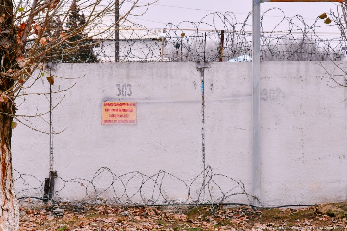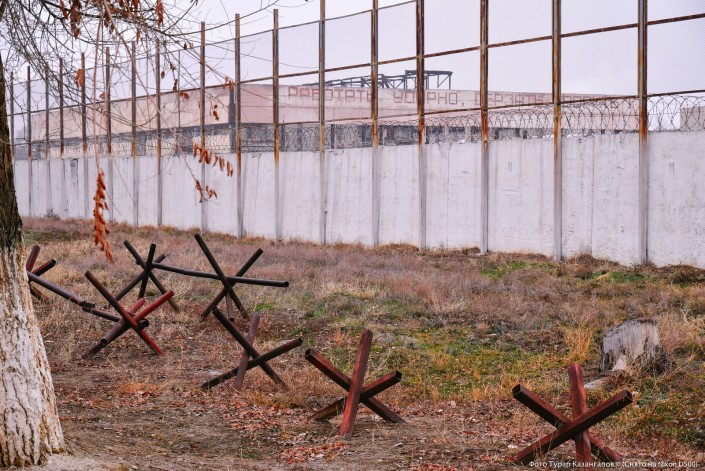 Предупреждающая надпись на стене - для местных жителей: "Запретная зона. Проход не допускается".