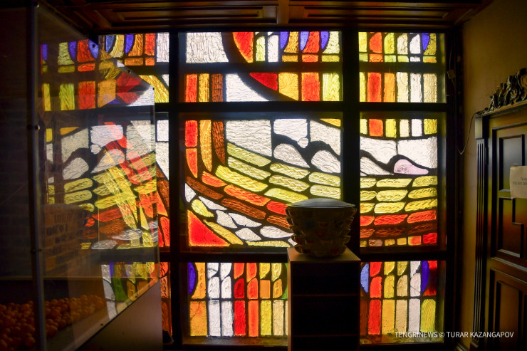 "Витраж работает как на интерьер (когда светло снаружи), так и на экстерьер (в вечернее и ночное время, когда внутри горит свет, а снаружи темно). Создание таких витражей было достаточно трудоемким. Художник рисовал эскиз, расчерчивал детали, а после каждый фрагмент отливался вручную на заводе. У этих фрагментов разные шаблоны и текстура, чтобы была насыщенность и свет преломлялся по-разному", - объясняет Темиртас.