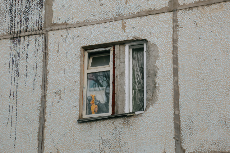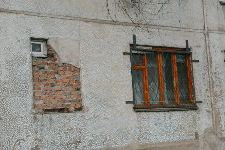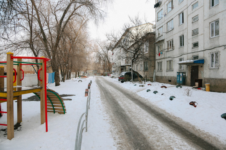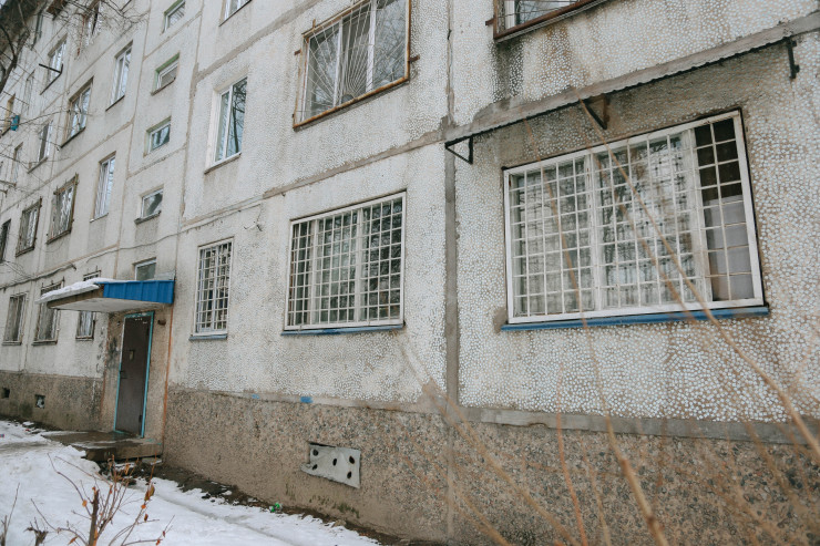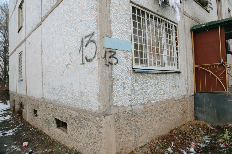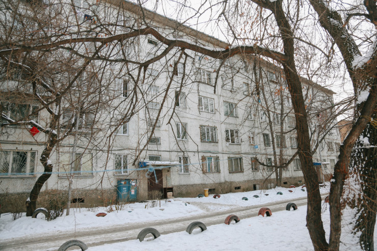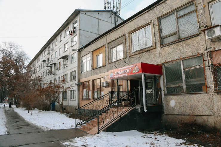 Сам дом - это приватизированное общежитие, которое находится на оживленной улице Жубанова, рядом с пересечением с улицей Саина.