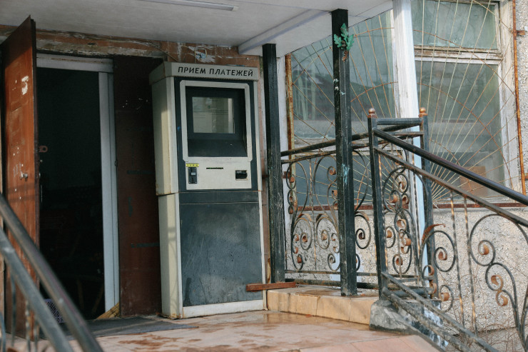 А вот продуктовый магазин в тринадцатом доме. Ничего необычного. Просто терминал по приему платежей здесь приварен намертво к железным перилам.