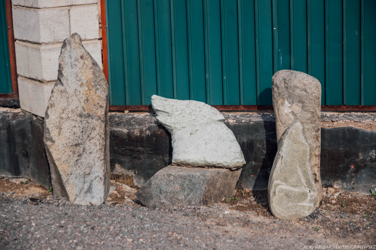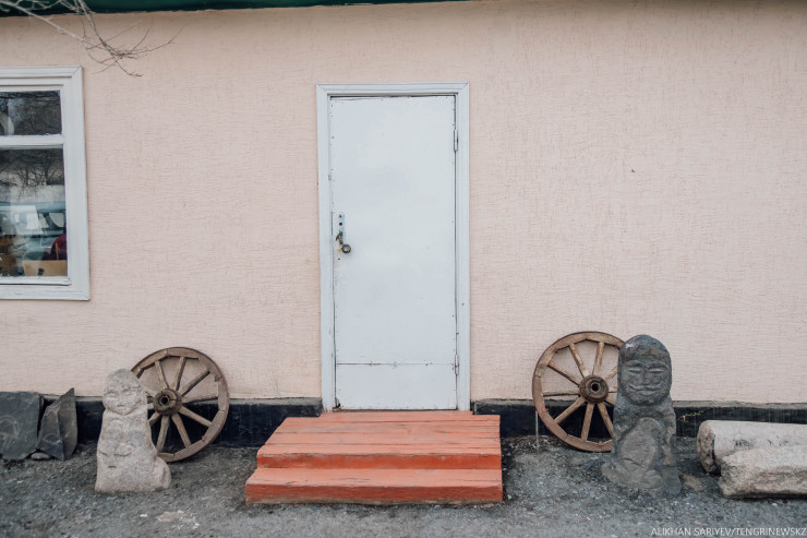 Снаружи у нас тоже много экспонатов, есть петроглифы, их много в наших горах. Некоторым по пять тысяч лет. К примеру, наскальное изображение про удачу, оно давало знак воинам, как пройдет их сражение. Еще интересны балбалы, это скульптуры женщины с ястребом и мужчины с беркутом, их ставили в том месте, где охотился знатный человек или хозяин этого места.