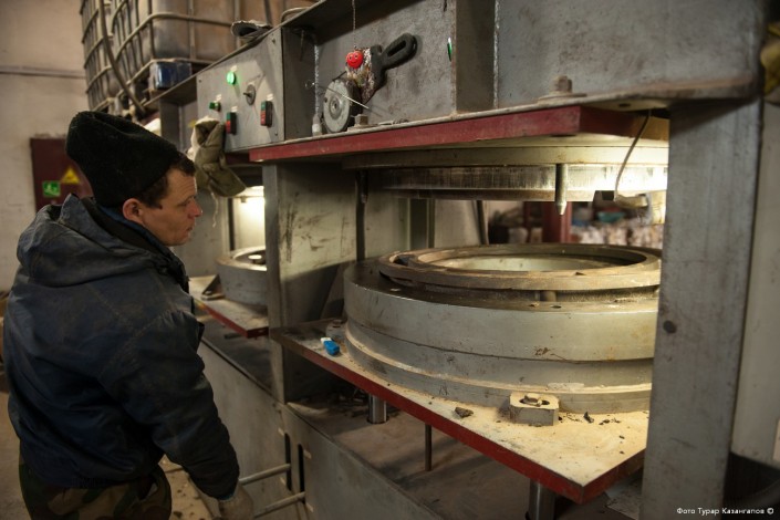 "Потом заливается в форму, прессуется. После охлаждаем. Получается легкая и практичная продукция".
