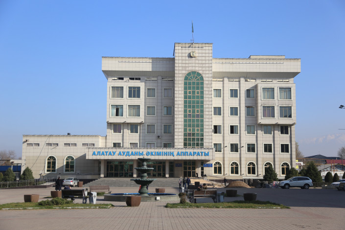 Первая остановка - микрорайон Шанырак. Посреди частного сектора расположились районные акимат, комитет по государственным доходам и суд.