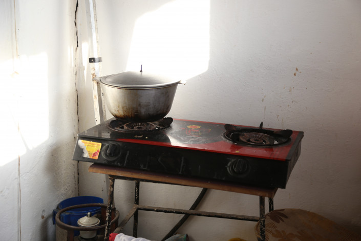 В комнате есть раковина, газовая конфорка. Все очень скромно. Туалет на улице, душа нет.