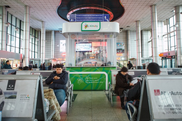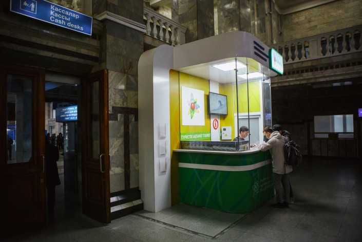 Инфоточка в холле железнодорожного вокзала "Алматы – 2"