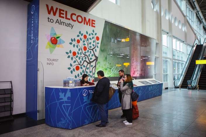 Первая точка со всей необходимой информацией для гостей города появилась еще в прошлом году в Международном аэропорту "Алматы". В этом году информационных пунктов стало на 6 больше.