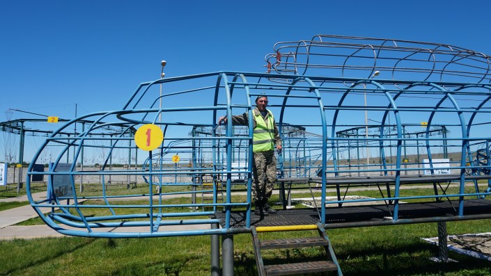Но сейчас подробнее расскажем о воздушно-десантном комплексе, где солдаты-срочники отрабатывают прыжки с парашютом.