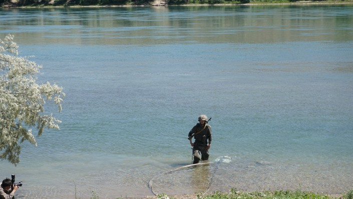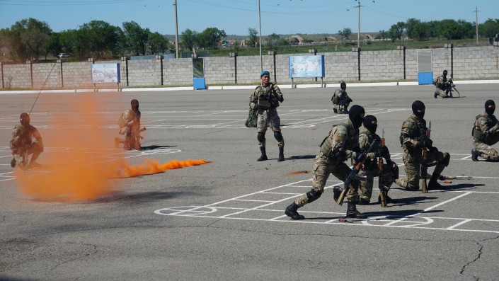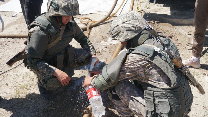Об этих и других тонкостях подготовки десантников корреспондент Tengrinews.kz узнала во время посещения воинской части десантно-штурмовых войск Талдыкорганского гарнизона Минобороны. Журналистам здесь показали, как работают миноискатели, продемонстрировали образцы вооружения и военной техники, познакомили с участниками миротворческих операций в Ираке. А еще показали процесс очистки воды из реки, которой военнослужащие потом напоили журналистов.