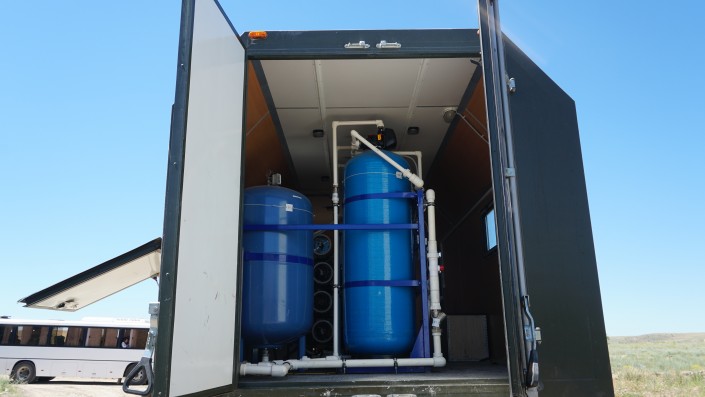 "Водоочистительная станция установлена в грузовом автомобиле. Она способна за час очистить четыре тонны воды. Тут есть фильтры, предусмотрены все растворные реагенты. В процессе забора воды из водоема вода проходит все стадии очистки", - отметили сотрудники передвижной станции.