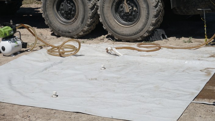 Напоследок смотрим, как работает установка разминирования полей. По словам военных, разминирование осуществляется с помощью ударной волны от заряда, который выстреливает на дальность около 250 метров и вызывает детонацию заложенных предметов. Поэтому установку разминирования называют еще "Змеем Горынычем" - за два языка пламени, которые образуются во время выстрела.