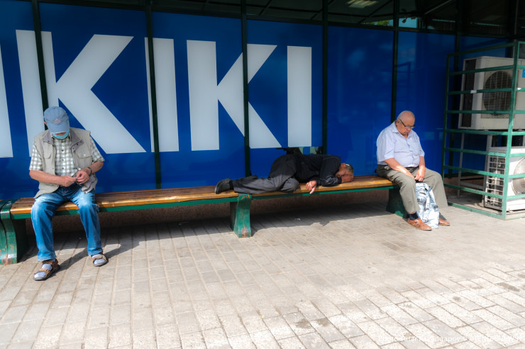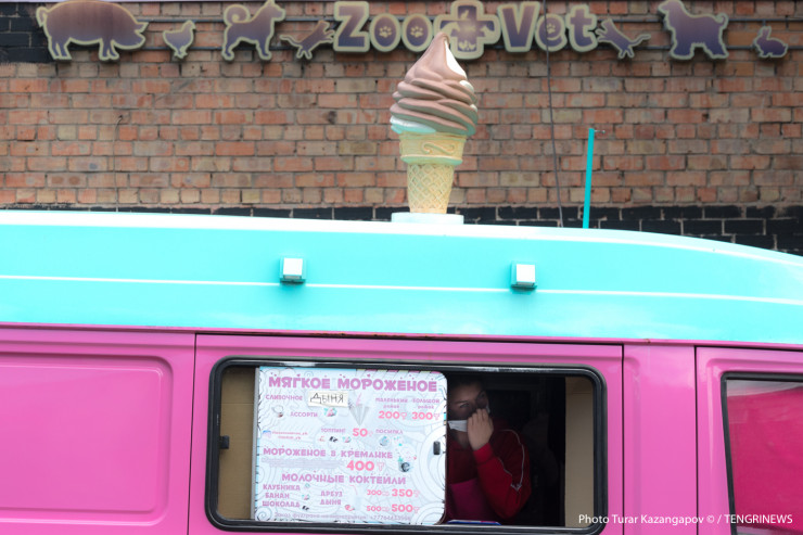 И так же, как в остальных казахстанских городах, люди здесь носят маски.