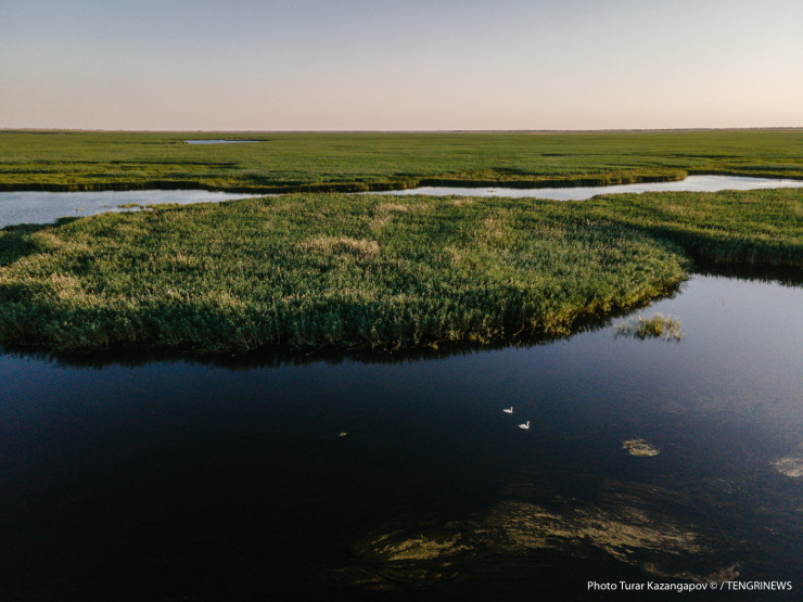 Пески и выжженные земли сменили зеленые оазисы, поля и много-много воды. Это Курмангазинский район.