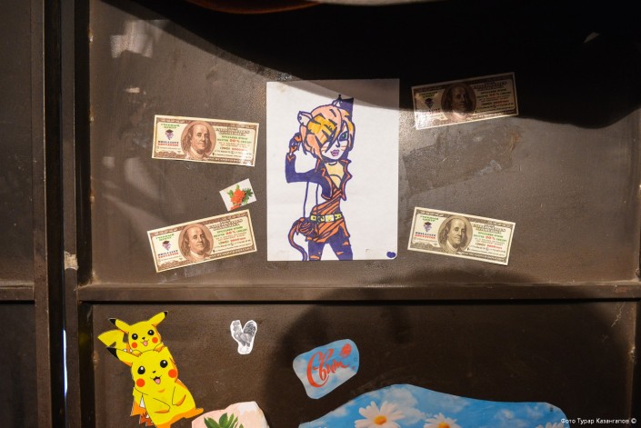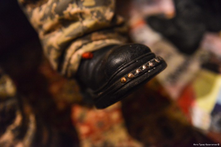 "Вот и эти ботинки. Как-то в магазине заметили и спросили у меня, а что это блестит. Это мелкие гвозди для украшения, нашел и прицепил", - рассказывает нам дворник, зайдя в свою каморку.