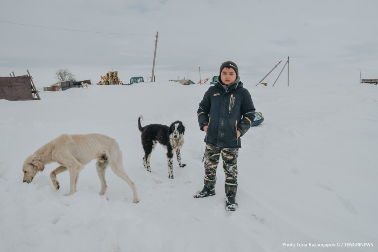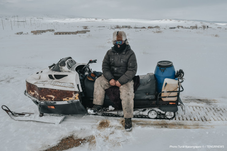 При въезде в село мы встретили местного жителя Изтолеу Кенесова. Он рассказал, что занимается скотоводством, а вообще в селении живут пять семей.