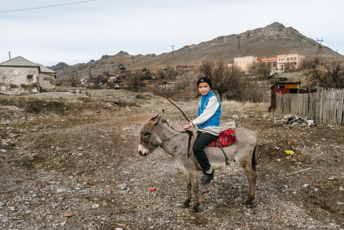 На одной из улиц Ачисая нас встречает жизнерадостный паренек на ослике. За время нашего нахождения в поселке этот местный житель еще не раз попадет в объектив нашей камеры.