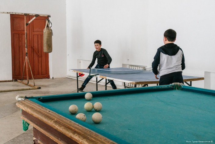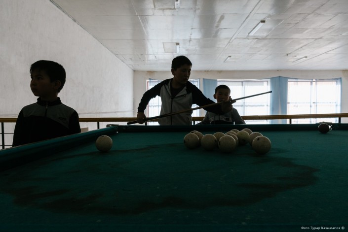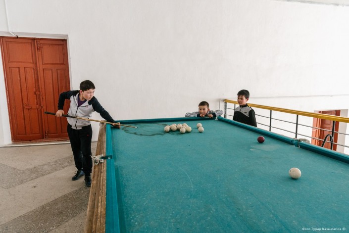 В одном из залов мы застали школьников возле бильярдного стола.