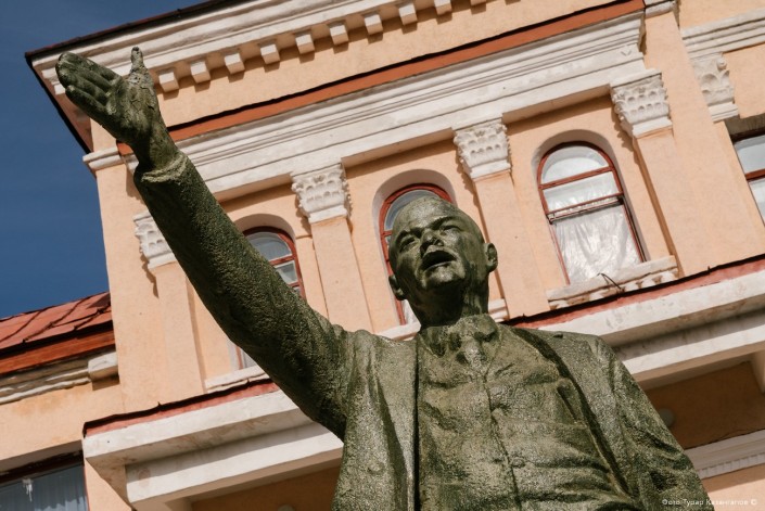 Фигура советского вождя выглядит очень свежей, как будто ее кто-то не так давно заботливо покрасил. Как выяснилось, ремонт Дворца культуры был проведен сравнительно недавно - в 2016 году.