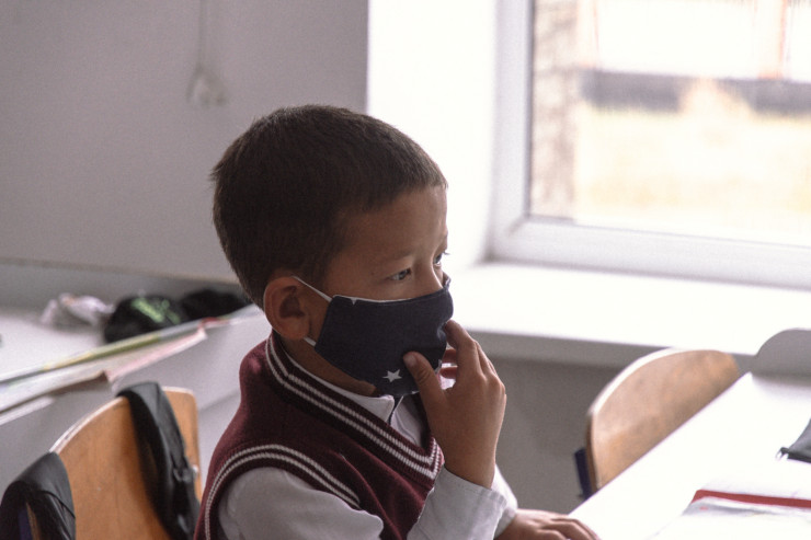 Кстати, вот как здесь учатся младшие классы в период пандемии - сидят по одному, на партах кресты.