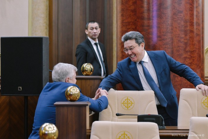 Руководитель Международного финансового центра "Астана" (неизвестно, сохранится ли это название после переименования столицы) Кайрат Келимбетов, как обычно, был в хорошем расположении духа. За несколько минут до этого фото журналисты, интересуясь тем, как он отреагировал на новости об отставке Назарбаева, его прямо спросили: "Плакали?"