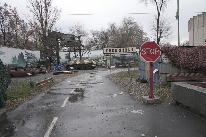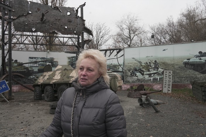 "Это музей АТО, то есть антитеррористической операции", - поясняет наш проводник и говорит, что все представленные здесь экспонаты привезены сюда из мест, где проходили боевые действия 2014 года.