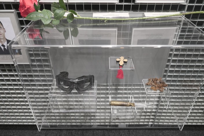 В этом музее есть еще и вторая часть, она находится внутри здания. Экскурсия здесь начинается с просмотра фильма о военных событиях 2014 года, а потом всем показывают фотографии и личные вещи людей, погибших в той войне.