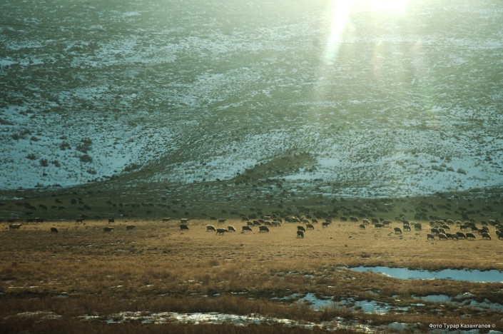 В предгорьях мирно паслись овцы и козы. Рядом с ними можно было заметить задумчивых чабанов, которые изредка с любопытством поглядывали в объектив нашей фотокамеры.