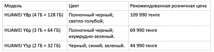 Компания HUAWEI объявляет о старте продаж в Казахстане сразу трех смартфонов серии Y – HUAWEI Y5p, HUAWEI Y6p и HUAWEI Y8p. Устройства относятся к среднему ценовому сегменту и созданы специально для молодых пользователей.