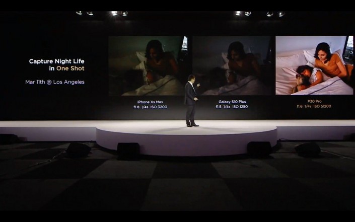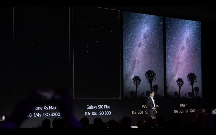 Ричард на множестве примеров продемонстрировал преимущество фотосистемы Huawei над основными конкурентами из модельного ряда Apple и Samsung. 10-кратный гибридный zoom действительно удивляет: помимо 5-кратного оптического элемента, изображение дополнительно проходит через множество алгоритмов искусственного интеллекта. Что касается AI, то в этот раз Ричард был крайне скуп на громкие заявления, лишь выделив лишь феноменальные улучшения фронтальной камеры, где появился AI HDR+ и 32 мегапиксельный сенсор. DxOMark дали 89 баллов selfie-возможностям P30, что на 7 очков опережает iPhone XS Max.