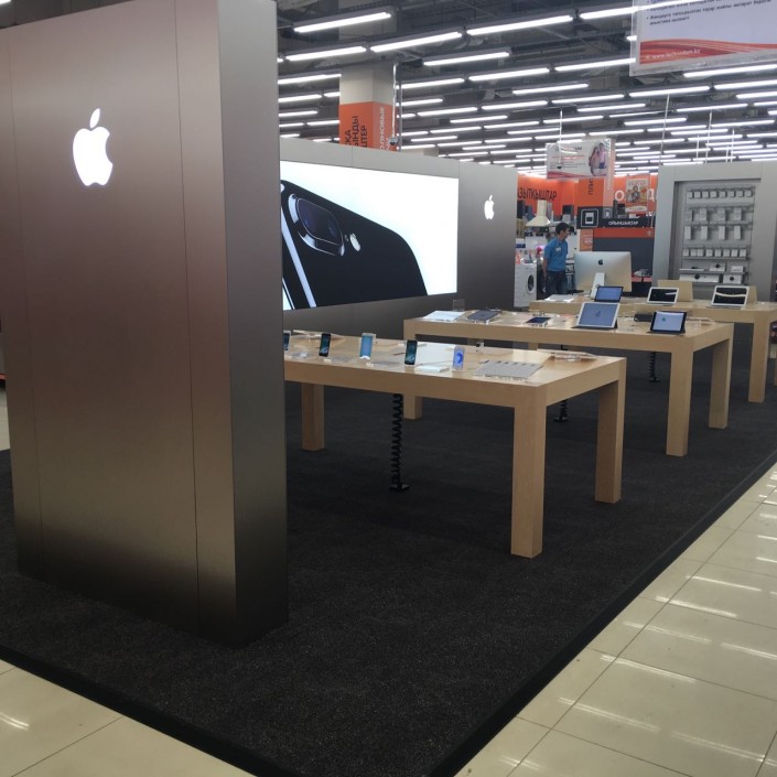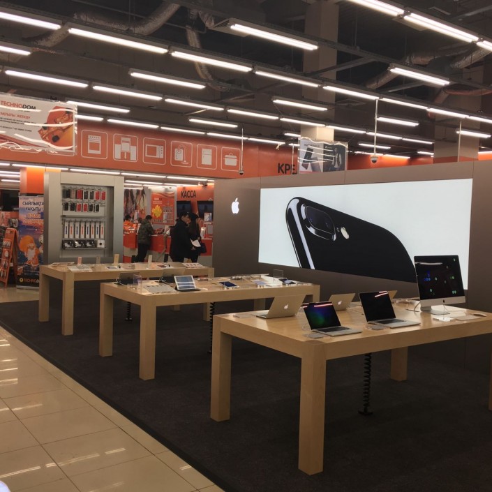 Первый в стране Apple Shop торговой площадью порядка 50 квадратных метров выполнен в передовом концепте. Здесь все продумано для удобства покупателей: свободный доступ ко всем продуктам, возможность протестировать любую технику, широкий спектр дополнительных услуг, а опытные продавцы-консультанты всегда готовы ответить на любые вопросы.
