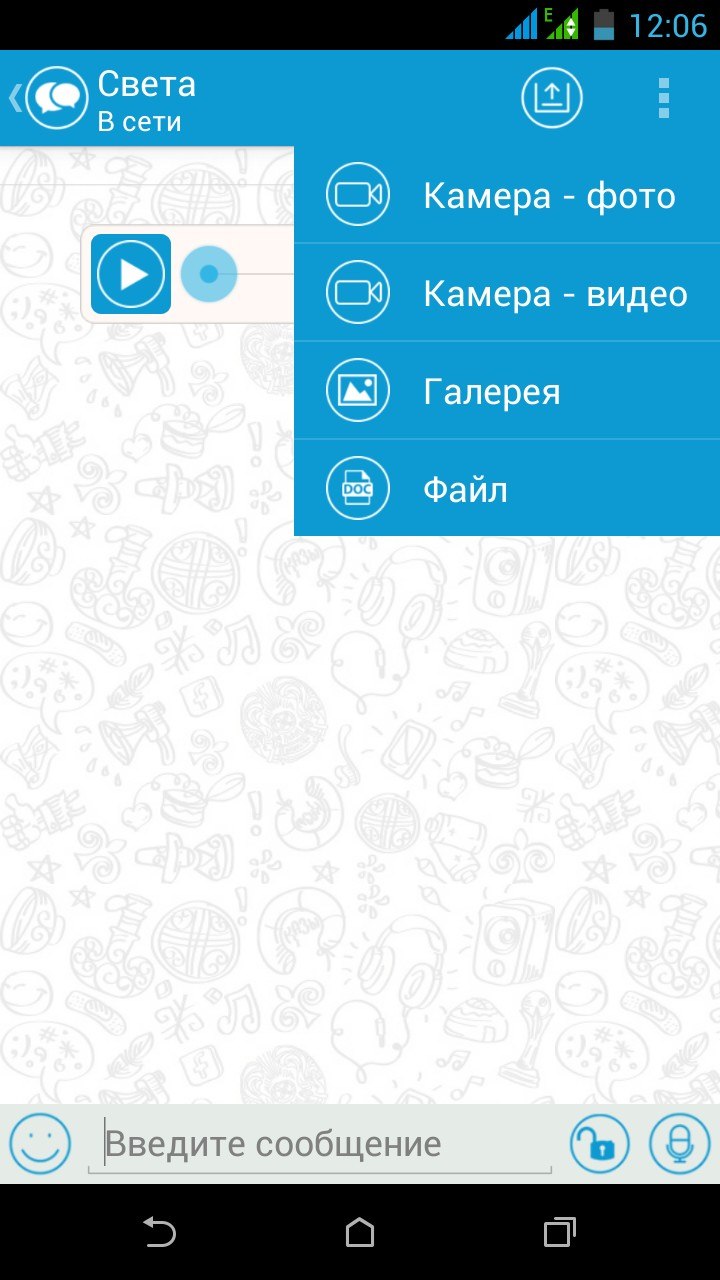 Также собеседнику можно отправлять фото и видео. Их можно сделать непосредственно перед отправкой или вложить в сообщение готовый контент из галереи. Кроме того, есть возможность отправки файлов, что отличает iTys от других мессенджеров.