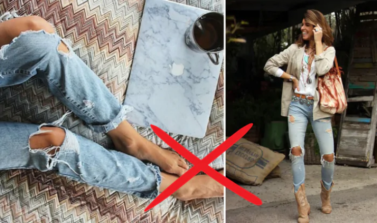 Джинсы, из которых будто бы хаотично вырвали кусочки ткани, в 2010-е выглядели дерзко, но отнюдь не эстетично. Их носили практически все, умудряясь комбинировать даже с деловыми жакетами. Сейчас такие сочетания - признак плохого вкуса.
