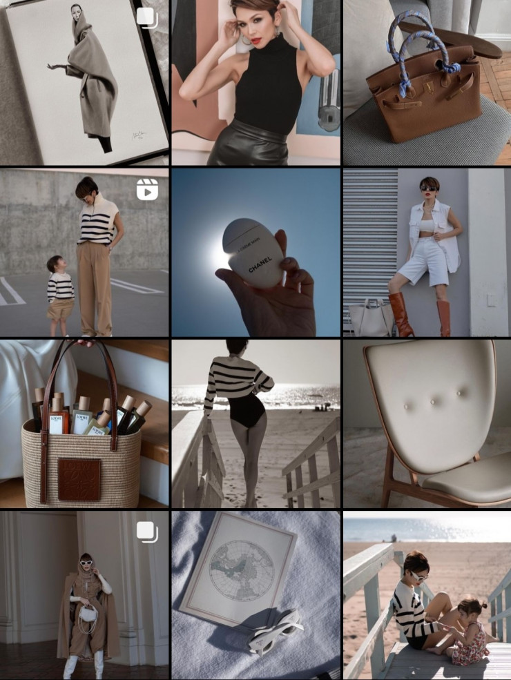 "Используйте один предмет гардероба либо что-то в интерьере одного и того же цвета на первые 9-12 постов. К примеру, на первом фото синяя майка, на втором фото синее небо, на третьем фото синий маникюр, на четвертом фото синяя машина. И не используйте другие перебивающие цвета. Все это нужно для того, чтобы связать картинки в вашей ленте между собой цветом. Следующие 12 постов работайте по той же схеме", - пишет Lido.