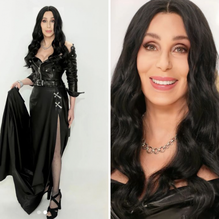 Шер умеет быть в центре внимания. Напомним, что недавно певица закрутила роман с мужчиной, который младше ее на 40 лет. На мероприятии Шер снова блеснула своей стройной фигурой, выбрав кожаный лук из короткой косухи и длинной черной юбки. Свой образ певица дополнила сетчатыми чулками и босоножками на высоком каблуке. Кто скажет, что в этом году Шер исполнилось 76 лет?
