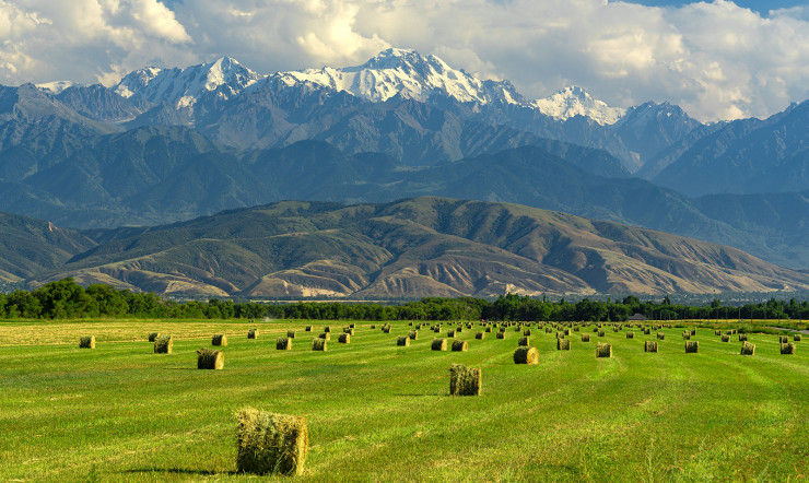 "Этот пейзаж меня очень впечатлил. Предгорная долина с аккуратно убранными рулонами сена и заснеженный пик Талгар. Красота и умиротворенность нашей земли", - подписал снимок Дмитрий.