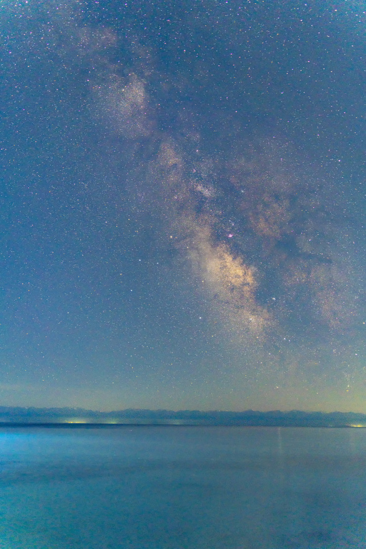 "Августовские ночи – идеальное время для съемок звездного неба. Темнеет уже раньше, погода стабильная, можно полюбоваться звездопадом. В этот кадр, кстати, попала пара метеоров – видно две полоски. Вообще, интересный снимок получился: здесь и озеро, и горы, и Млечный Путь, и даже метеоры", - отмечает Дмитрий.