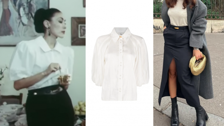 Однако в ее юбке мы заметили весьма интересную деталь – она идет с имитированным ремешком. Отметим, что юбки с имитацией ремня на средней посадке сейчас в самом тренде. Найти их можно почти во всех бутиках массмаркет-сегмента.