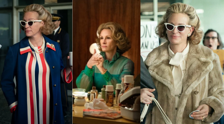 Исторический байопик, рассказывающий о жене генпрокурора США Джона Митчелла, стремительно взлетел на вершину топа в 2022 году. Марта Митчелл первой публично заговорила о том, что ее супруг и президент Ричард Никсон замешаны в заговоре. Во избежание скандала СМИ обвинили женщину в том, что она сошла с ума. Тем не менее в новостных сюжетах героиня выглядела безупречно – идеальная укладка, очки в оправе "кошачий глаз", умелая игра контрастов в одежде – все образы настолько гармоничны, что зрителю сложно счесть ее заявление ложным.