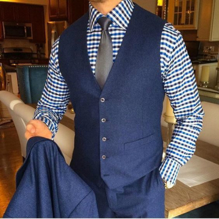 Клетчатая рубашка является прекрасной альтернативой белым и голубым вариантам, но не стоит забывать о том, что крупная и контрастная клетка совершенно не вписывается в деловой образ. Если же принт мелкий и выдержан в одной гамме, тогда смело комбинируй такую рубашку с классическим костюмом и дополняй ее галстуком.