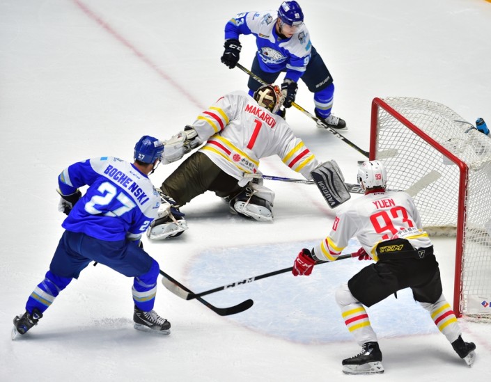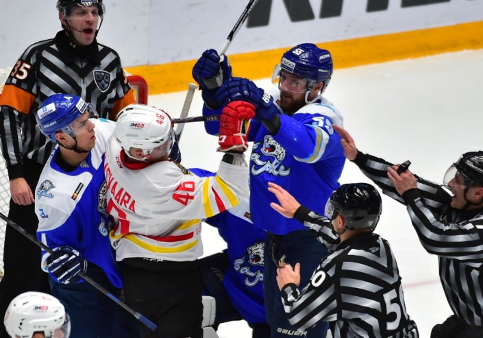 Игра в Астане завершилась со счетом 4:1 в пользу хозяев. Уже в самом начале матча "Барыс" обеспечил себе преимущество. На третьей минуте счет открыл нападающий Никита Иванов, а на пятой в большинстве отличился канадский защитник Кэм Баркер.
