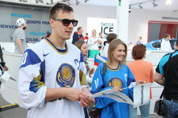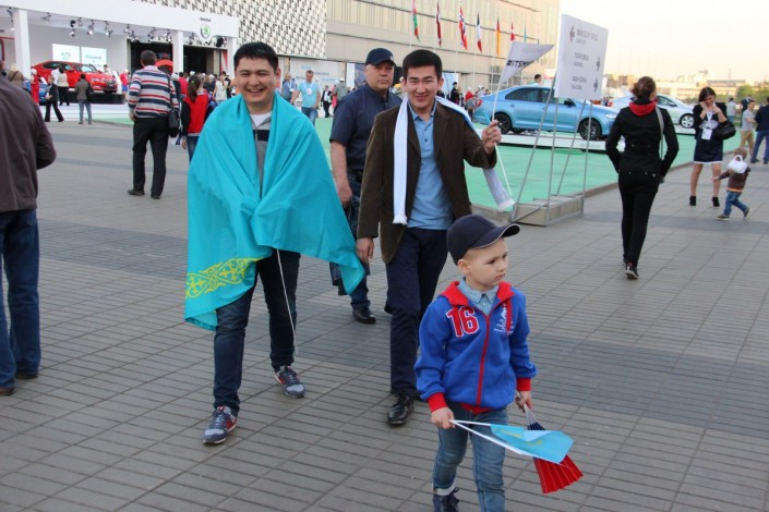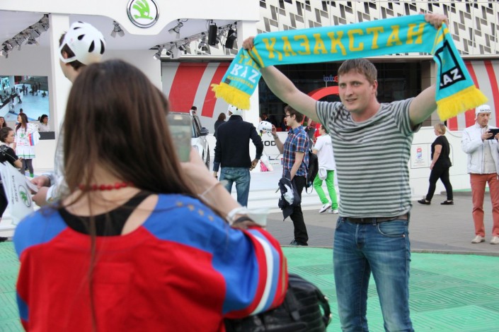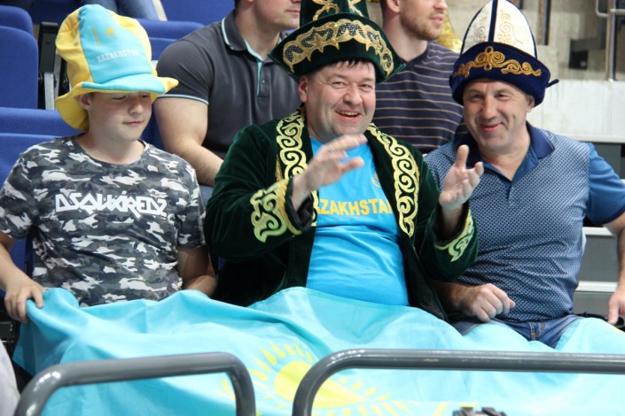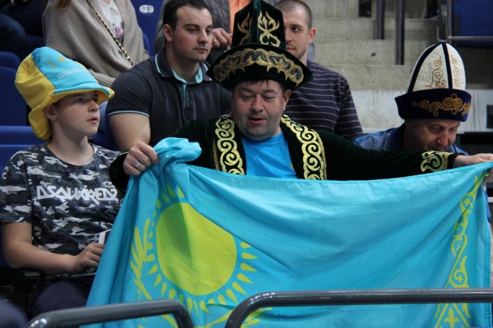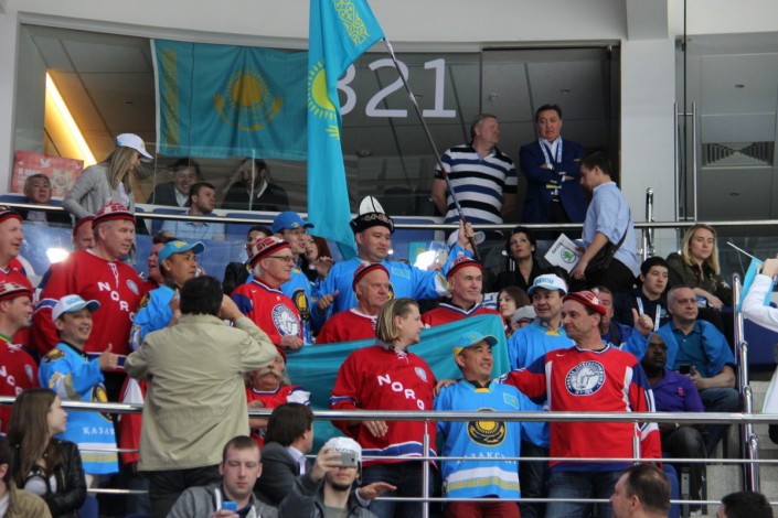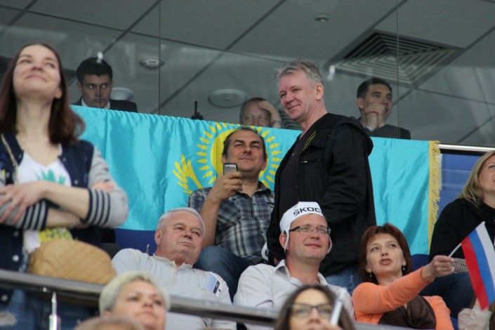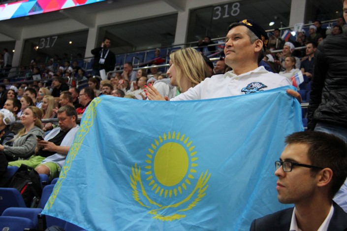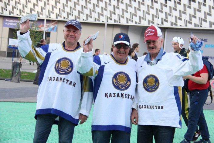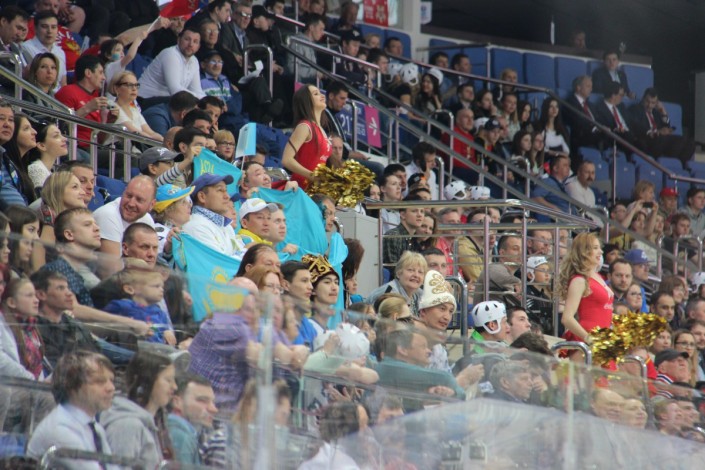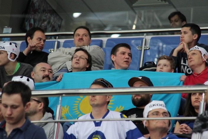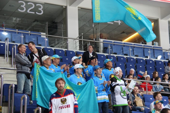 А вот как поддерживали национальную команду болельщики на трибунах арены "ВТБ Ледовая Арена". Фото корреспондента спортивного портала Vesti.kz.