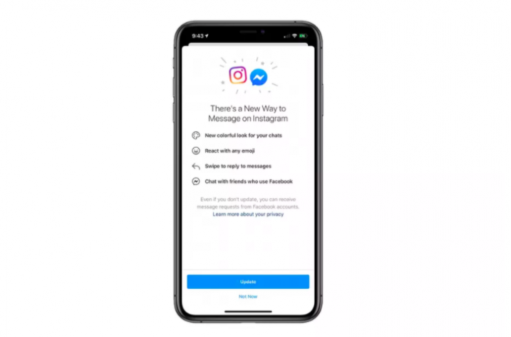 С новой функцией у пользователей появятся новые возможности, такие как новые цвета для чатов, реакции на смайлики, ответ свайпом и чат с пользователями Facebook, даже если у пользователей Instagram нет аккаунта в Facebook.