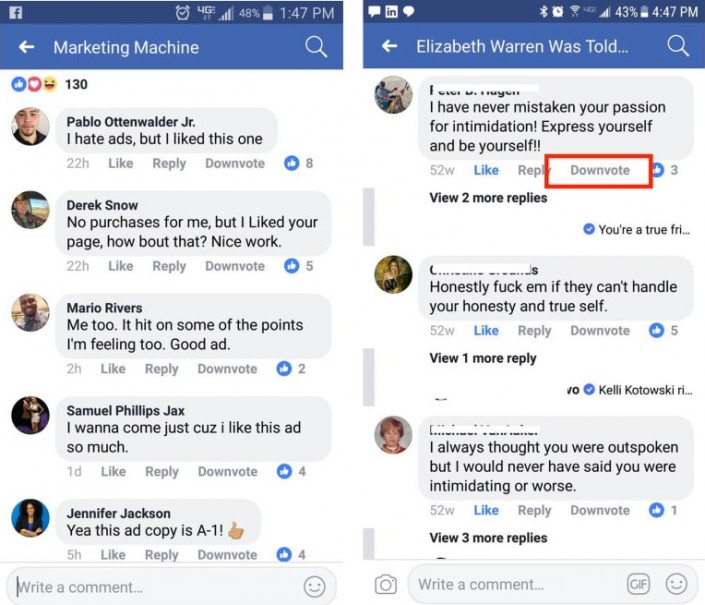 Кнопка "проголосовать против" позволяет пользователям "понизить" тот или иной комментарий, в результате читающие увидят их с меньшей вероятностью. Инструмент задуман для борьбы с оскорблениями, троллингом и непристойностями, как средство сделать общение в Facebook более конструктивным и менее токсичным. Однако никто не помешает с таким же успехом использовать "проголосовать против" как орудие онлайн-агрессии.